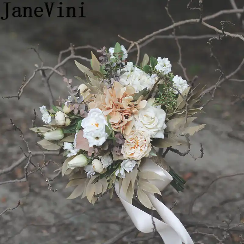 Janevini Ins Vintage Mariee Bouquet Defoliation Artificielle Beige