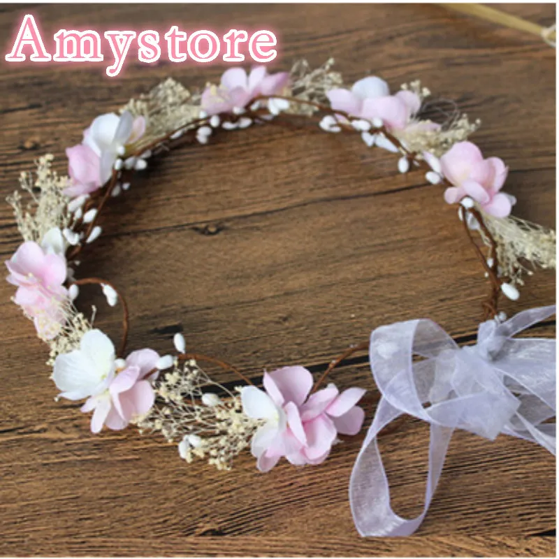 Femmes Fille Faux Gypsophile Fleur Couronne Mariee Artificielle