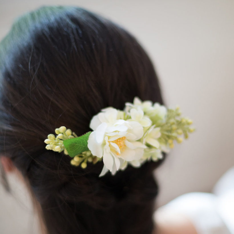 Peigne De Fleurs Artificielles Blanches Et Vertes Fait Main A Paris