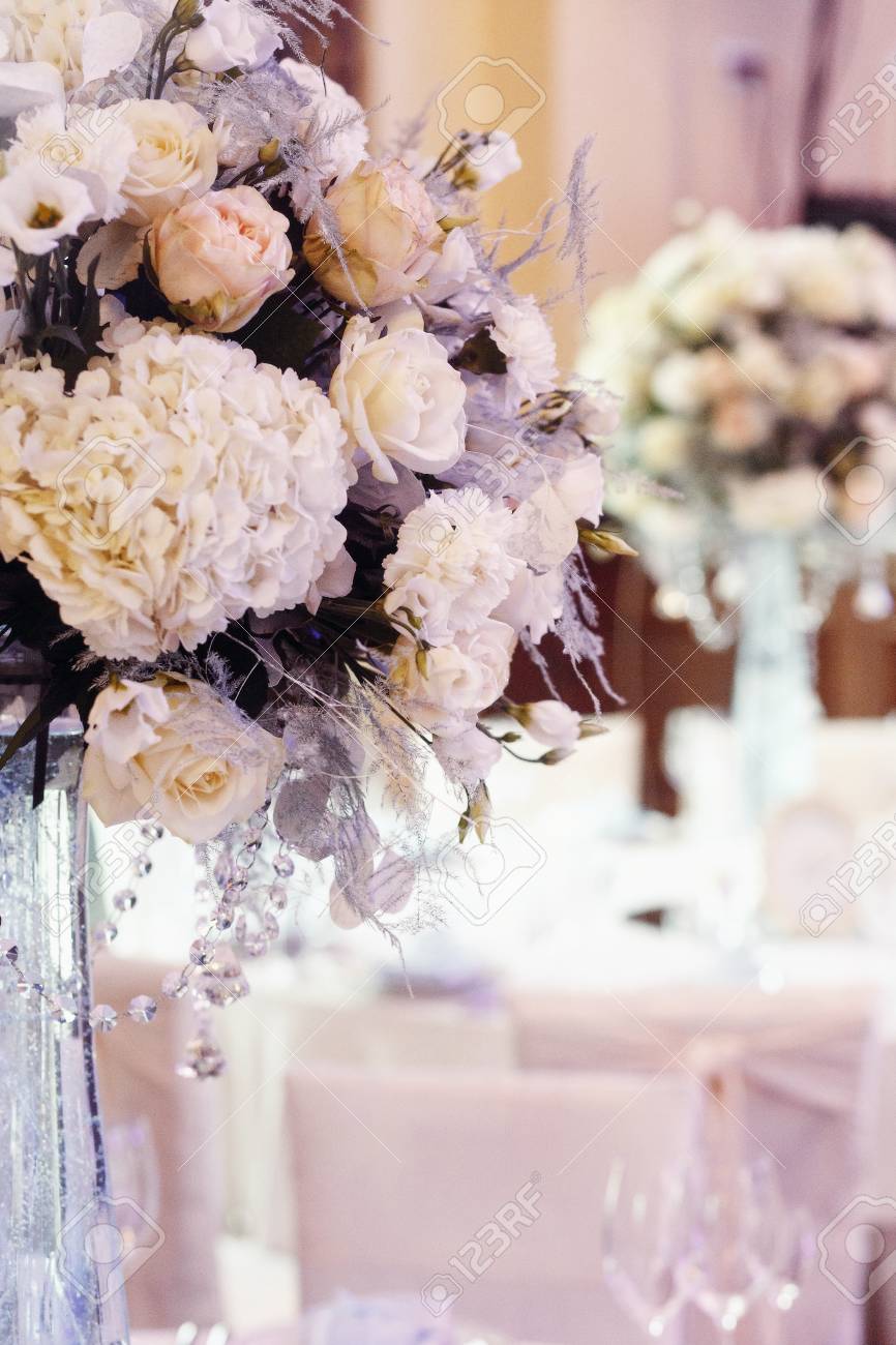 Decor De Mariage De Luxe Avec Des Fleurs De Roses Et Hortensia
