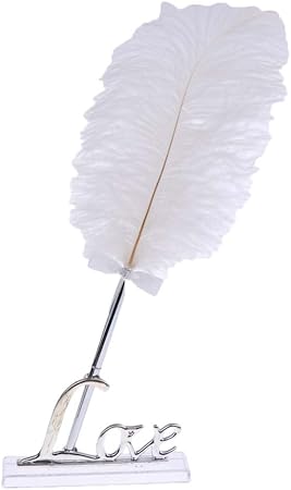 Magideal Stylo De Signature Mariage Plume Blanche Support Porte