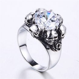 Grosse Bague Homme Acier Inoxydable Tete De Mort Biker Gothique Tribal