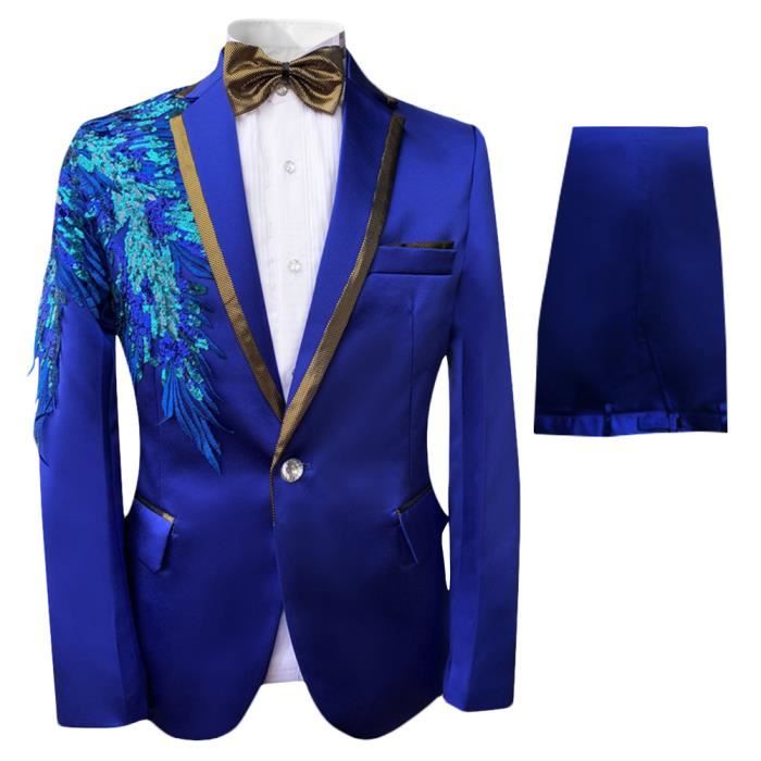 W 71 Hommes Bleu Royal Avec Fleur De Lys Mariage Costume Formel